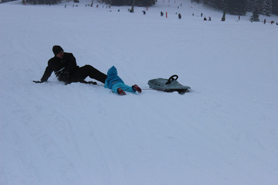 We had trouble finding what exactly it was that Monica told us we were looking for, but we did find a ski hill, with a sledding hill next to it so we thought we’d give it a shot. The car was telling us it was -8 Celcius, which is about 17 degrees Fahrenheit. BRRRR!