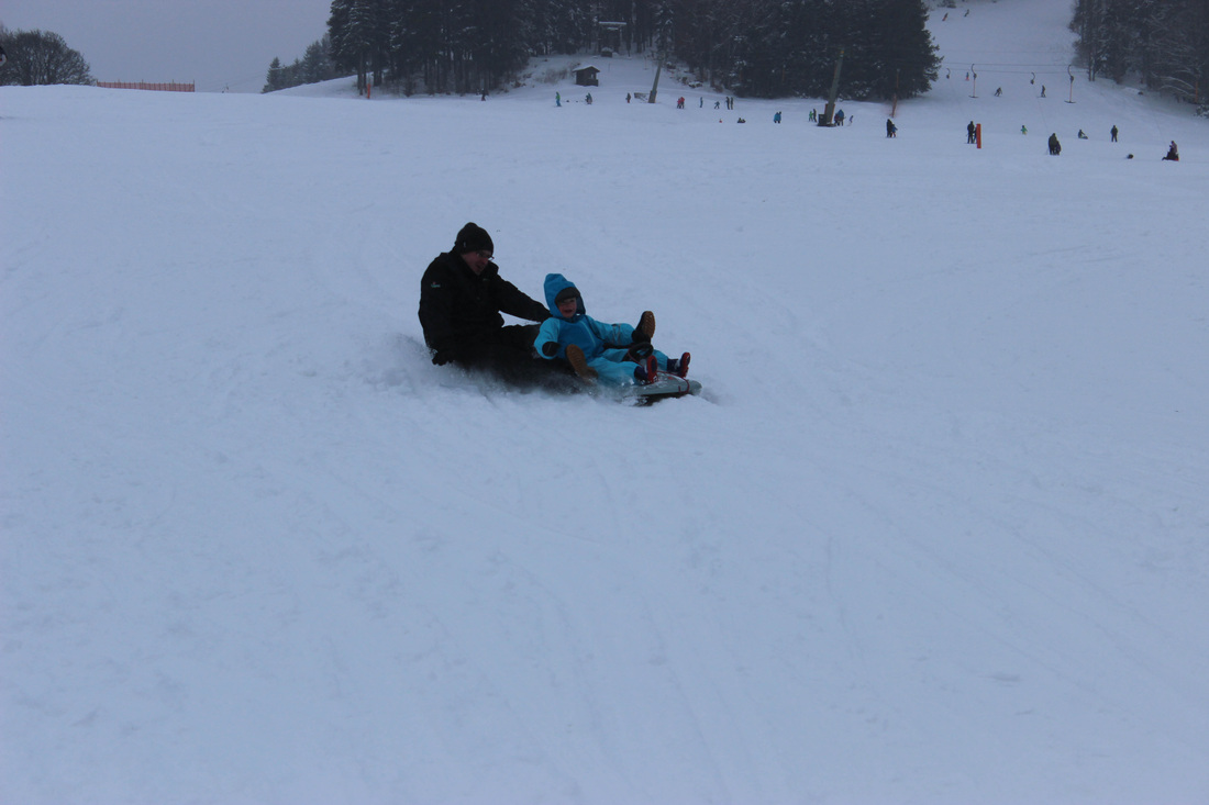 rodelbahn.) We had originally thought we were going to have to drive a long distance, closer to the Alps to find some good snow and hills. But she told us that just across the border, in Germany in the Black Forest (that sounds so foreboding!) there were places that would suit us just fine. And BONUS- she had sleds and toboggans for us.