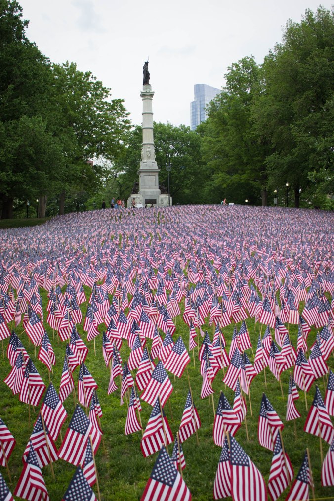 Because it was Memorial Day weekend there was a display of American flags in the park. I can’t recall the significance of the number of flags but I believe it was related to local veterans.