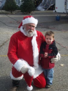 Before we got to this Santa Cameron had the chance to sit on Santa’s lap somewhere else. (Which went well except that Cameron thought he was going to actually get the things he wanted from Santa then and there.) But when he saw Santa again at the tree lot he had it down. “I want a truck and a trailer and Lightning McQueen and lots of trains.”