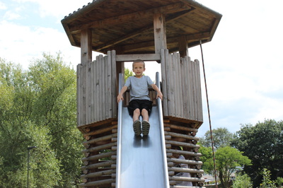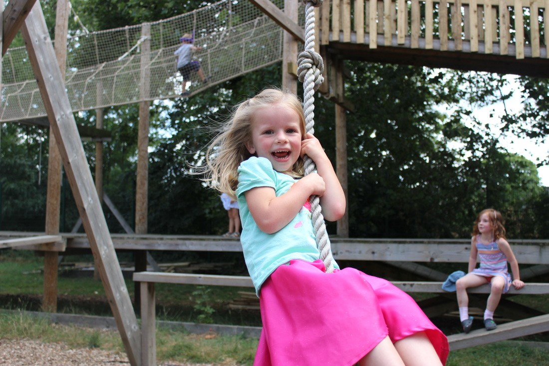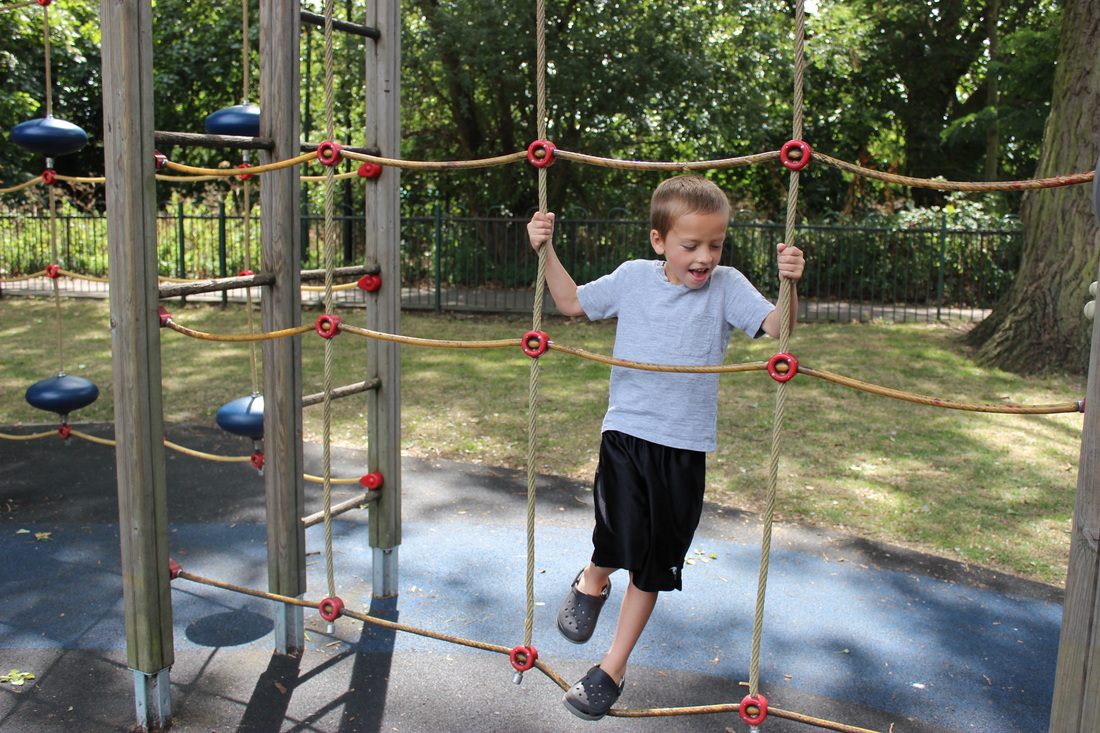 After we ate and the kids had their fill of this playground we walked through more park, crossed an overpass over the National Rail tracks, and into another section of the park with yet another playground. This kind of playground is called an Adventure Playground, or what we Americans might call a lawsuit waiting to happen. There was a man there (parks and rec type employee) who asked me to sign a waiver but it was loosely enforced and I saw many kids come in and out of their own accord.