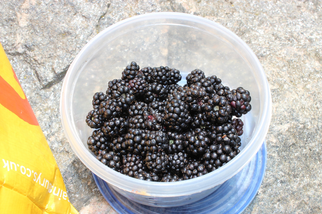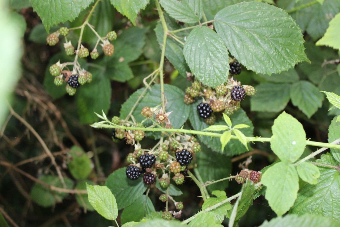What WERE they doing? Picking wild blackberries! So we did that too. Until our poor wrists and hands were all scratched up and none of us could imagine eating another blackberry ever again. (Until dinner at least because I used the FRUITS [see what I did there?] of our labors in a salad.)